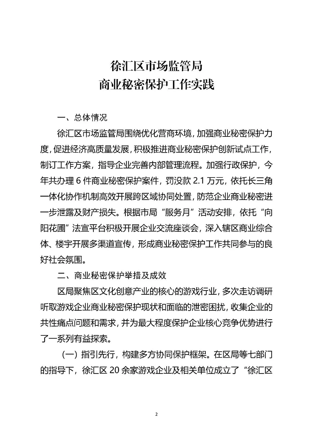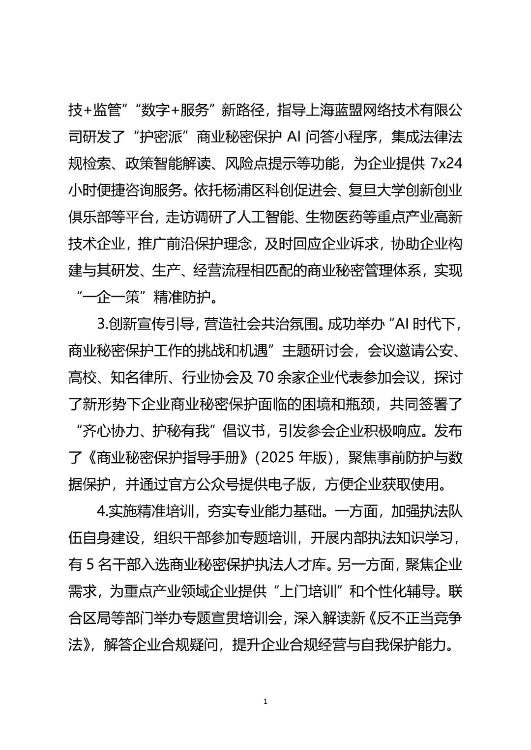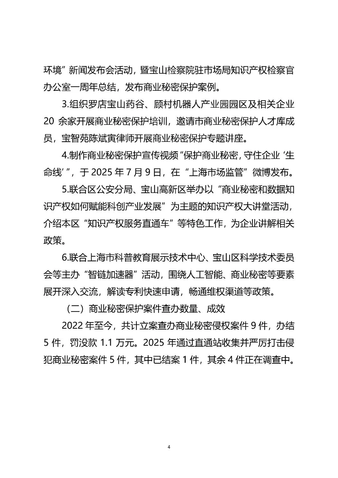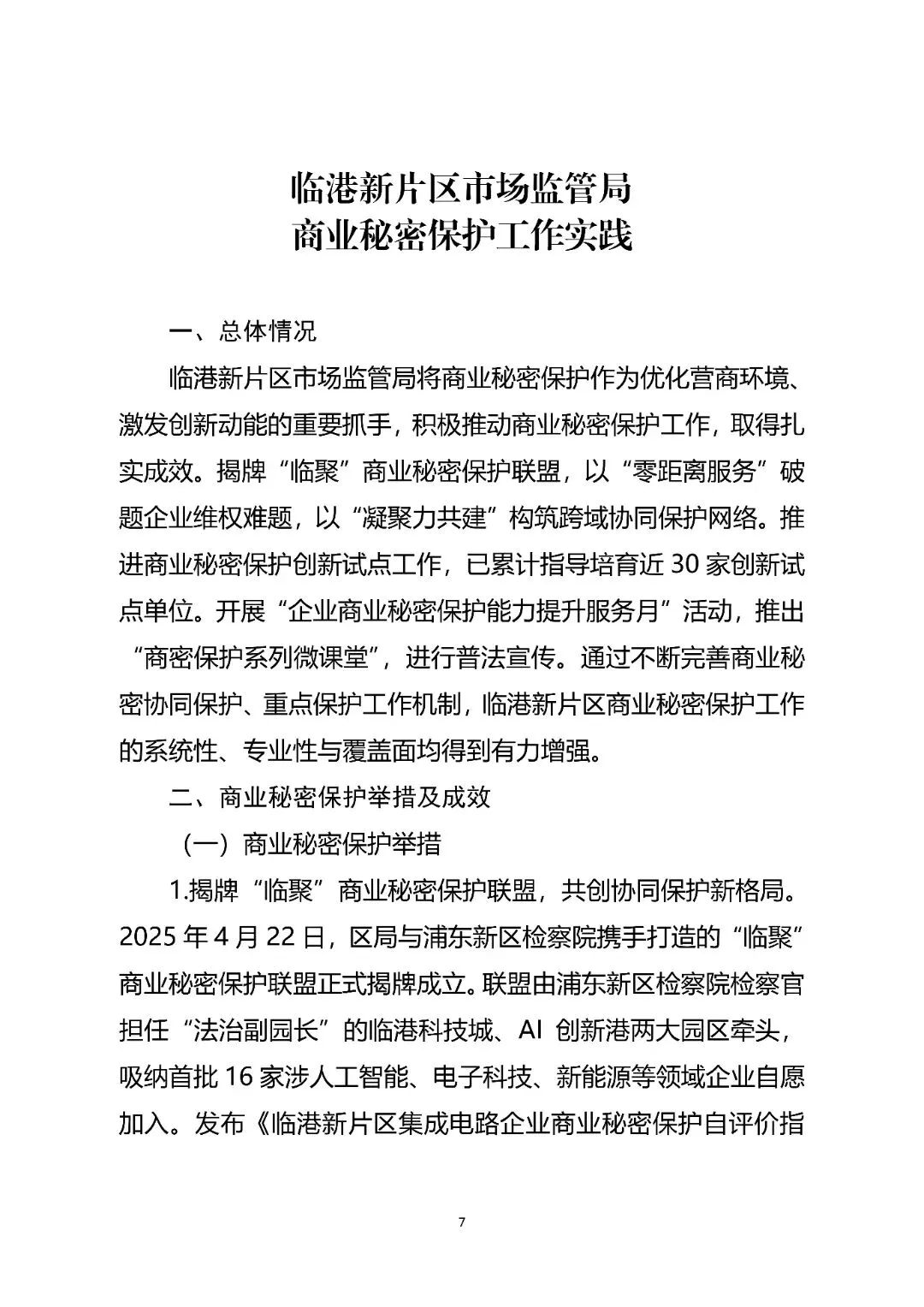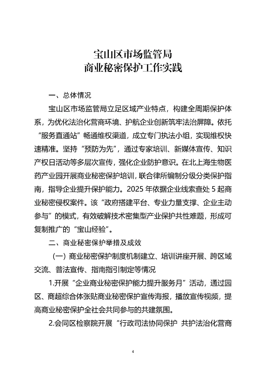 商业秘密是企业创新发展的核心资产,也是优化营商环境、激发市场活力的重要支撑。上海市场监管部门聚焦制度引领、精准服务、执法维权、创新试点,着力构建 “点线面” 结合、全链条、立体化的商业秘密保护体系。