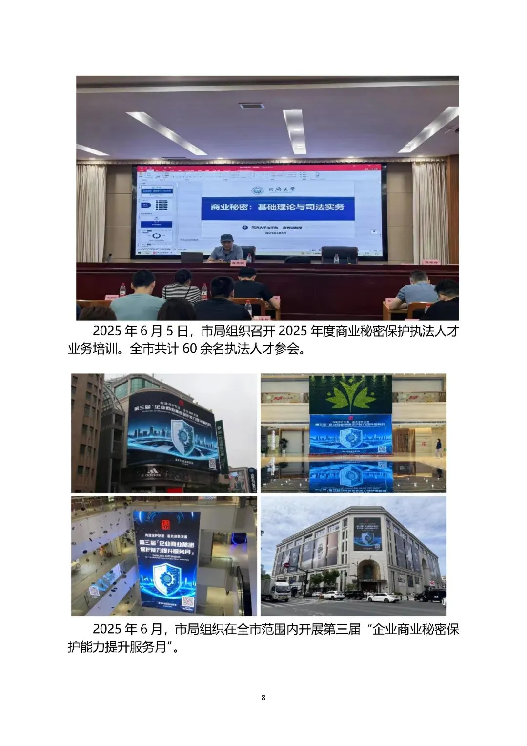 通过组建市级专业执法人才库,深化协同机制,构建全链条保护格局;近三年查办商业秘密侵权案件58件、罚没款近500万元,2025年办结22件、罚没款167万元,严查重点领域侵权行为;同时查办一批重大典型案件,平等保护各类经营主体,持续优化市场化、法治化、国际化营商环境。