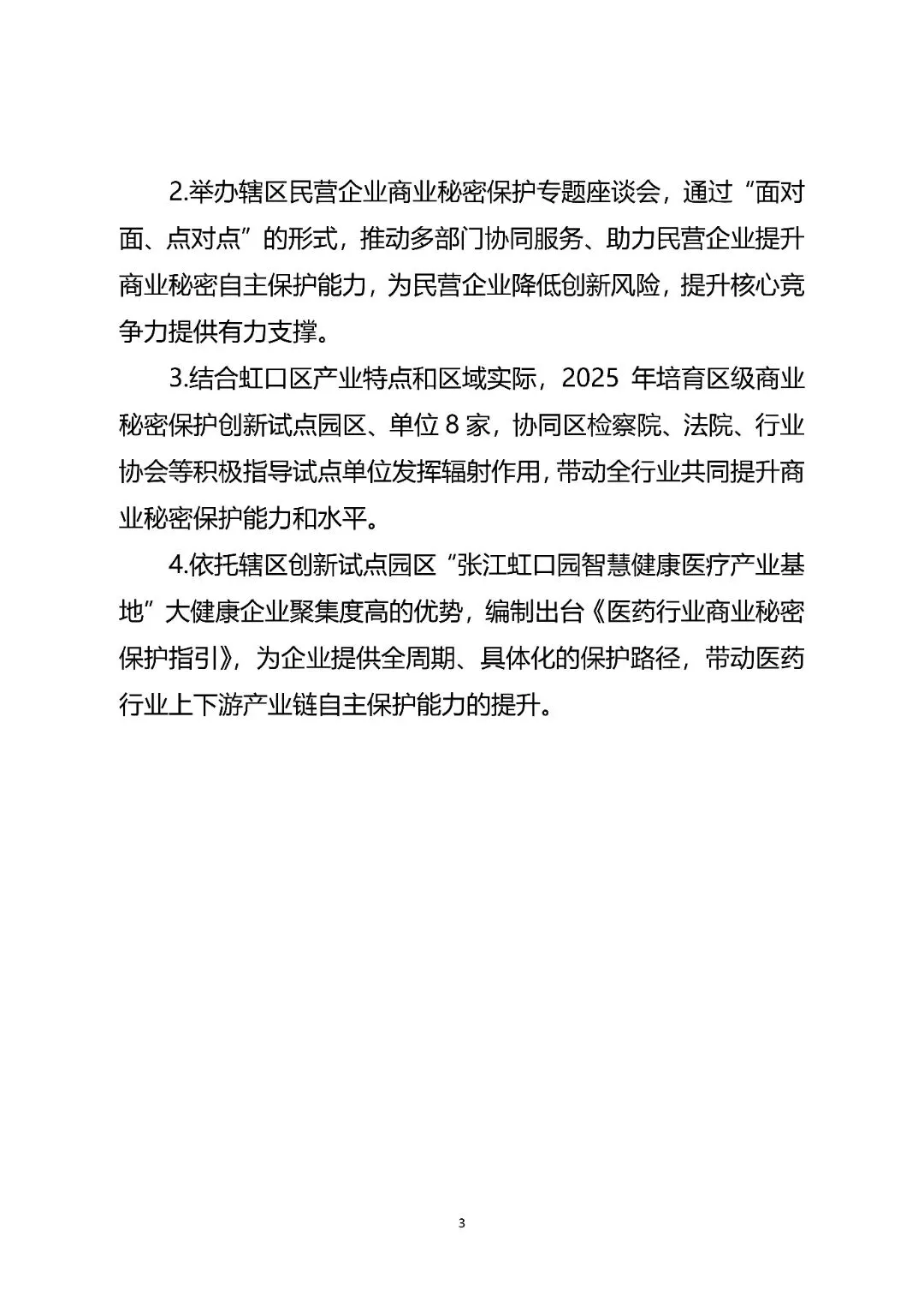 每年开展“企业商业秘密保护能力提升服务月”活动,2025年举办73项特色活动、走访200余家企业,发布重点领域保护指南与标准;成立重点行业商业秘密保护联盟,强化行业自律与协作,构建协同保护格局;同时落地商业秘密(数据产品)质押融资,打造“上海模式”,推广区块链存证、AI问答小程序等数字化工具,破解企业存证、举证难题。