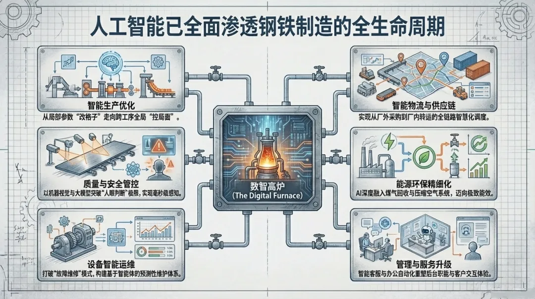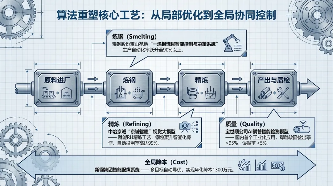 AI正深刻变革钢铁生产的核心工艺,实现从局部参数优化到跨工序全局协同决策的飞跃。