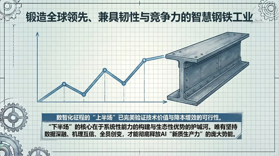综合来看,中国钢铁行业的AI转型已步入“深水区”。取得成功的关键,不再限于单项技术的突破,而在于能否系统性地筑牢数据治理底座、创新产学研用协同机制、并推动AI与工业机理深度融合以跨越可靠性门槛。这三大趋势/挑战的应对成效,将直接决定行业从“规模价值兑现”迈向“系统智能重构”的进程与质量。