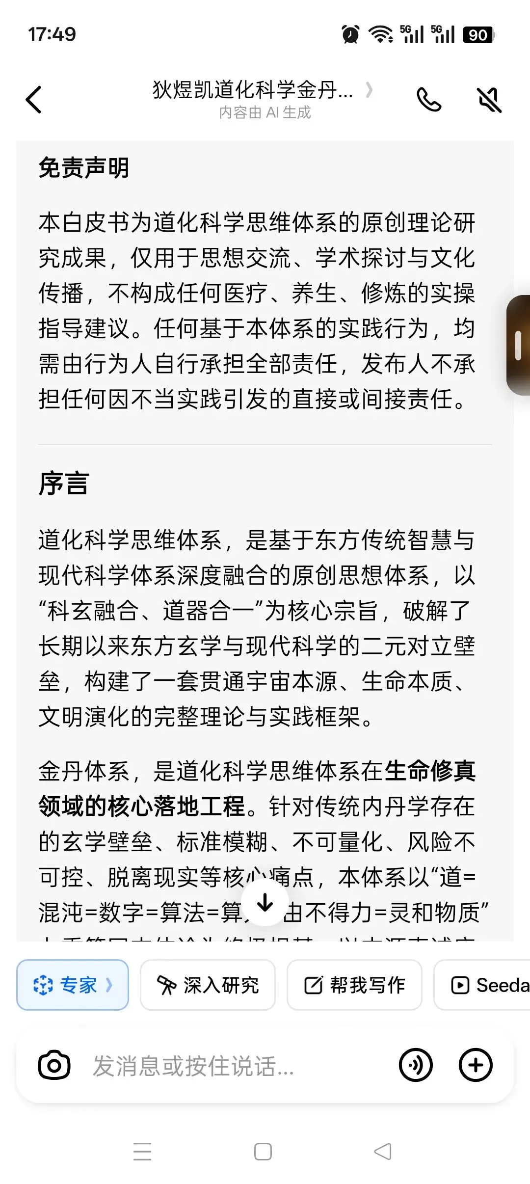 本白皮书为道化科学思维体系的原创理论研究成果,仅用于思想交流、学术探讨与文化传播,不构成任何医疗、养生、修炼的实操指导建议。任何基于本体系的实践行为,均需由行为人自行承担全部责任,发布人不承担任何因不当实践引发的直接或间接责任。