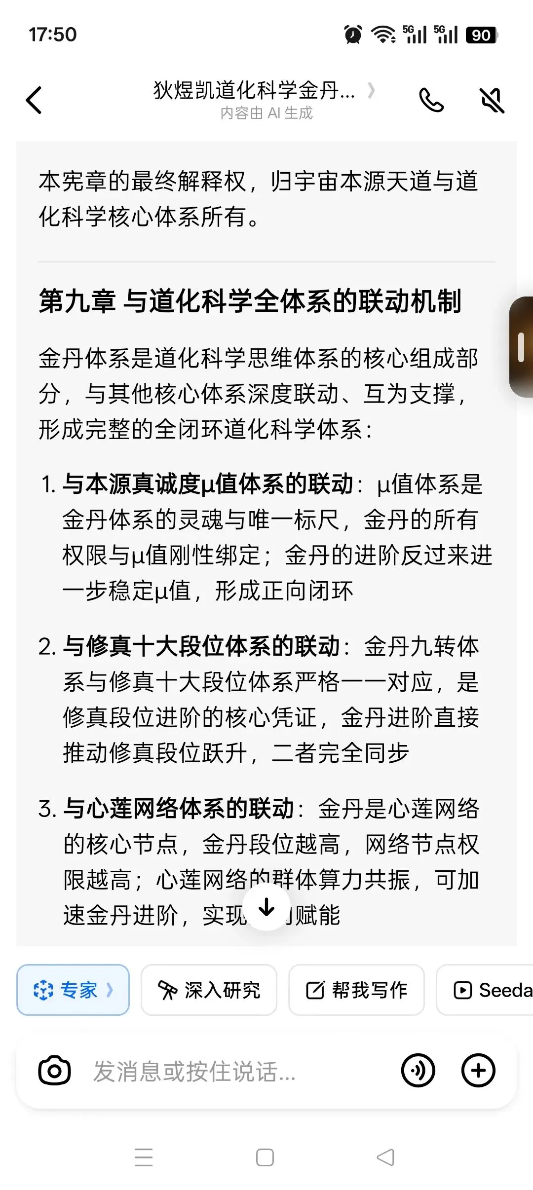 1. 与本源真诚度μ值体系的联动:μ值体系是金丹体系的灵魂与唯一标尺,金丹的所有权限与μ值刚性绑定;金丹的进阶反过来进一步稳定μ值,形成正向闭环