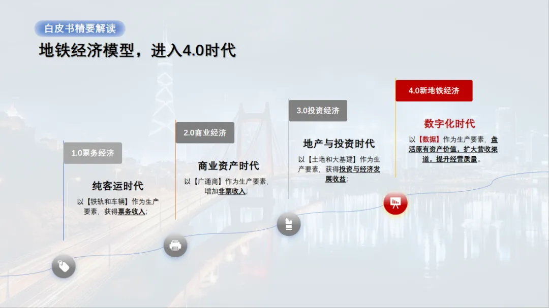 4.0新地铁经济时代:以数据为生产要素,盘活资产价值、扩大营收、提升经营质量。