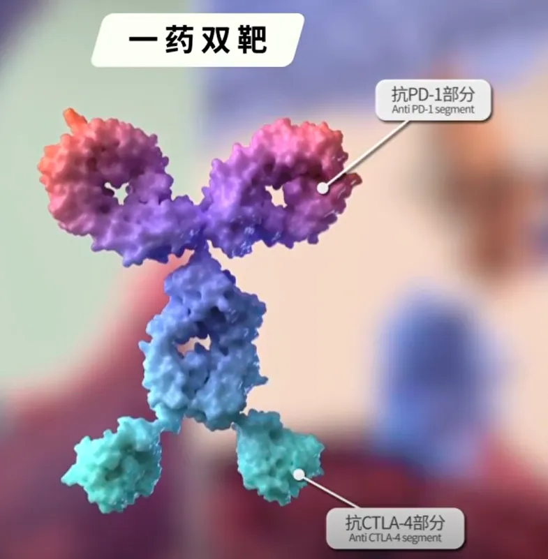 康方生物将自主研发的PD-1单抗的全部与CTLA-4单抗的抗原结合部分融合在一起,形成具有PD-1和CTLA-4双重靶向能力的双特异性单克隆抗体卡度尼利。