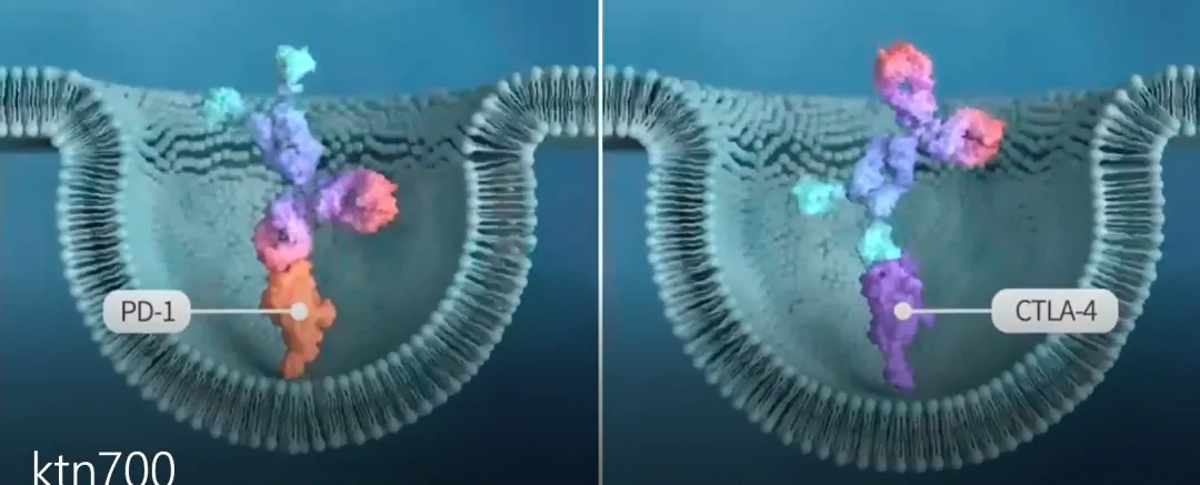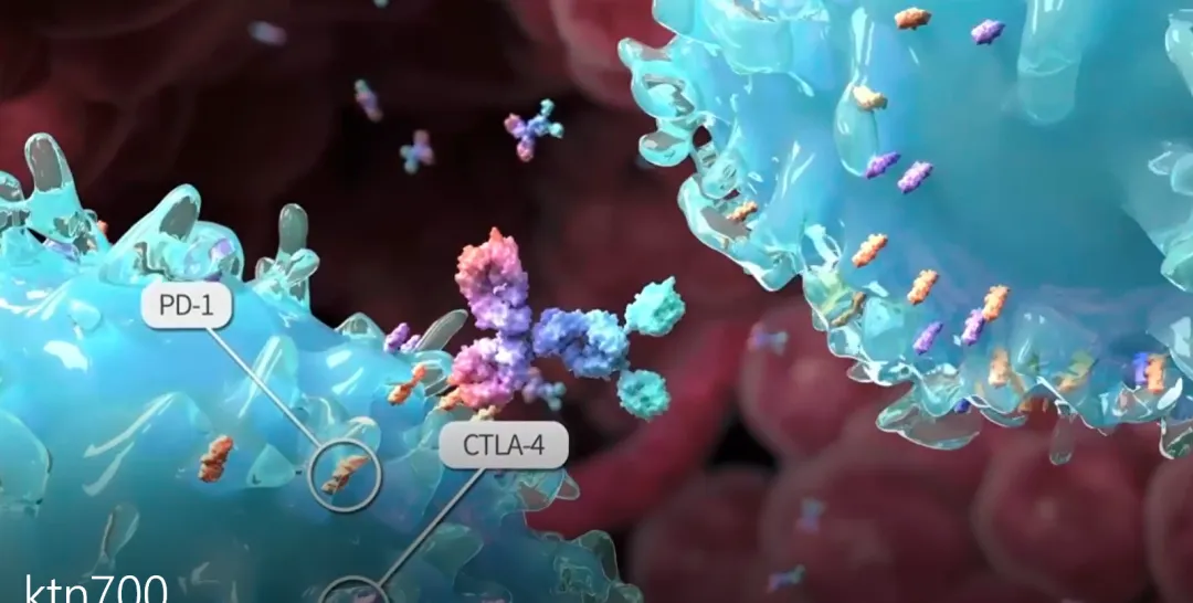 该抗体一方面可竞争性结合CTLA-4解除T细胞激活阶段的抑制性因素,激活大量效应T细胞从淋巴结运往全身各处。另一方面,卡度尼利单抗可竞争性结合效应T细胞上的PD-1,解除肿瘤细胞上的PD-L1对其的抑制,从而正常发挥免疫杀伤作用。