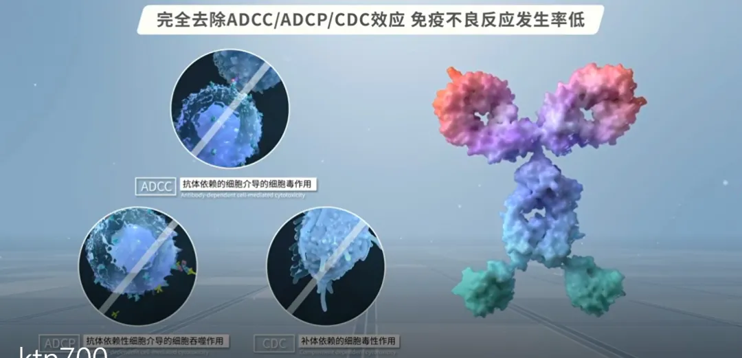 卡度尼利Fc端效应的沉默设计,其完全去除了ADCC、ADCP、CDC效应引起的效应T细胞损耗和免疫不良反应,安全高效源自独特的向瘤富集效应,肿瘤组织浓度高,外周组织浓度低,有效降低免疫细胞对于正常组织的伤害。
