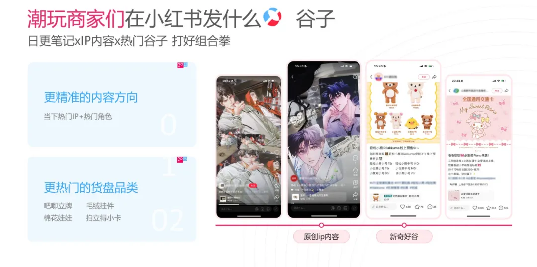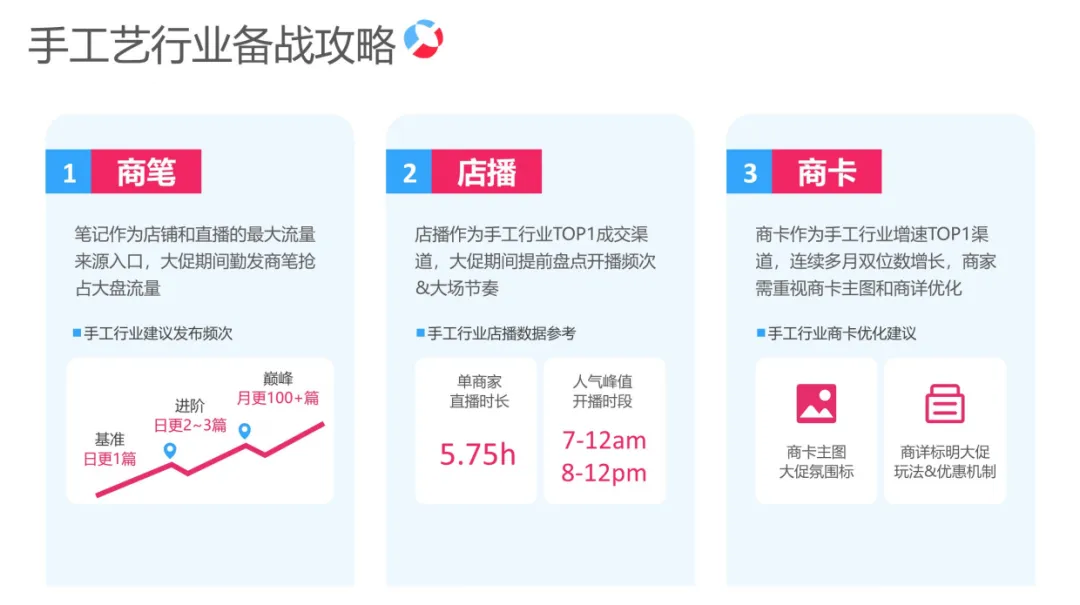 《2025小红书四大行业报告》指出,小红书潮玩、手工、虚拟、宠物四大行业借内容种草实现高增长,成交抓手以笔记、商卡、店播为主,各行业占比不同:潮玩笔记成交占63%,手工店播成交达56%,虚拟行业店播占39%,宠物笔记占47%。优质内容需贴合用户需求,搭配日更1-3篇笔记、单场直播≥4h等运营策略,笔直联动可助力GMV大幅增长,部分品牌3个月GMV增速达400%。未来行业将持续深化笔直一体,大促与场景化运营成增长关键。