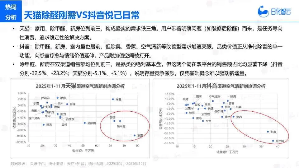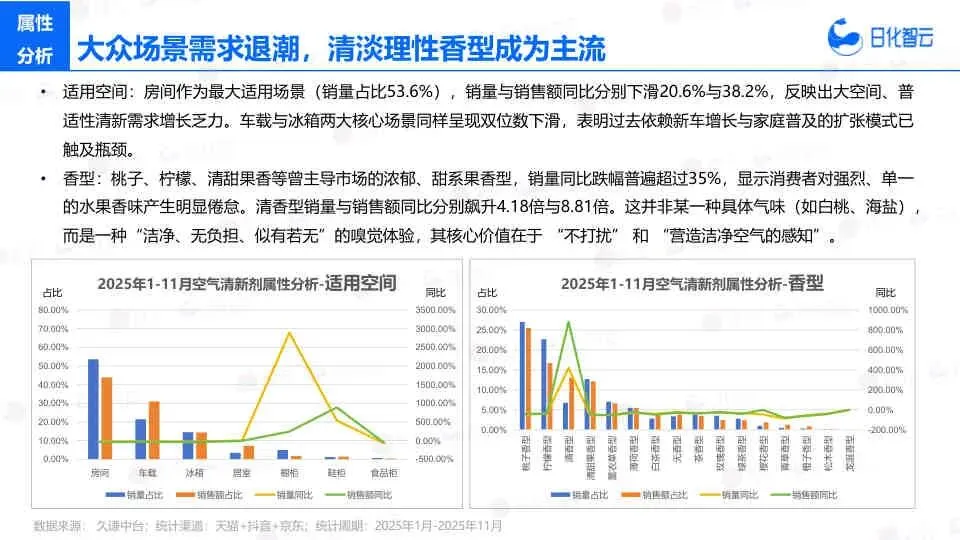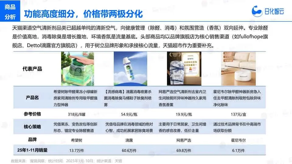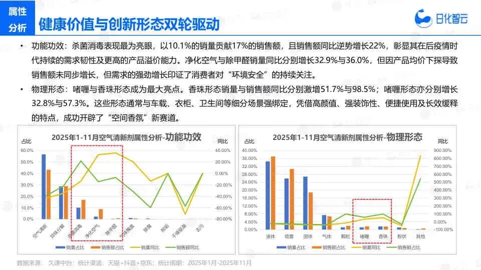 - 功能: “杀菌消毒”功能表现亮眼,销售额逆势增长22%;“净化空气”与“除甲醛”需求强劲但因均价下探未转化为销售额增长。