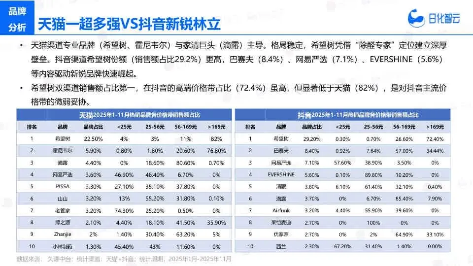 四、 渠道分化:天猫“强者恒强” vs 抖音“新锐林立”