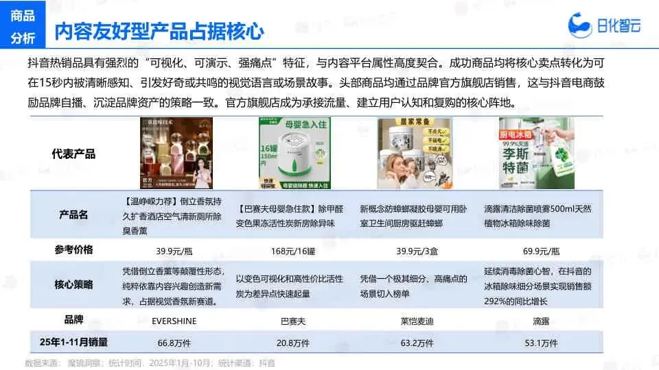 - 抖音: 市场结构更均衡健康,25-56元中端价位增速亮眼(销售额+128.6%)。头部集中度大幅稀释,巴赛夫、网易严选、EVERSHINE等内容驱动的新锐品牌快速崛起,竞争核心是内容敏捷性与爆品击穿能力。