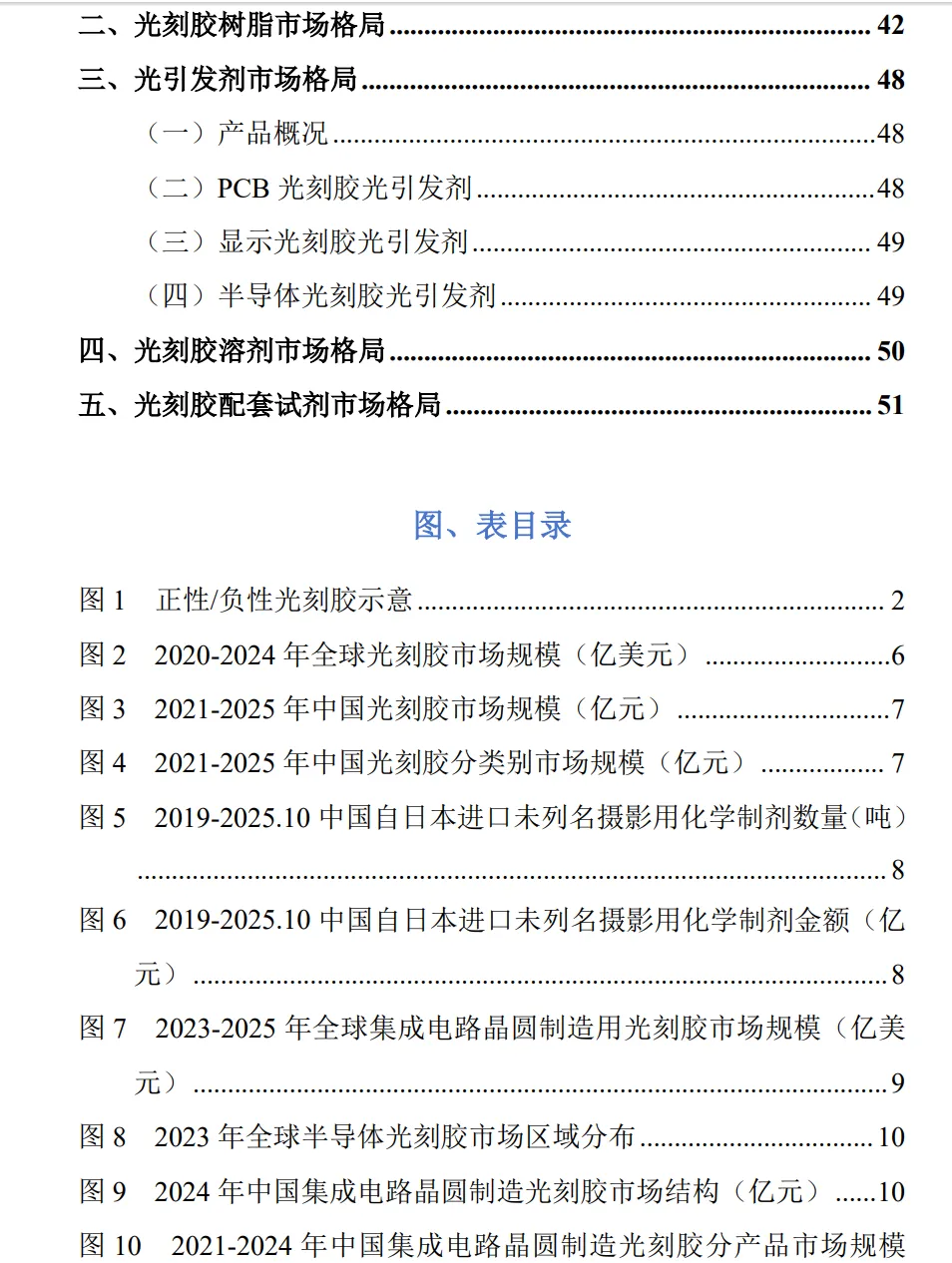 PCB 光刻胶:全球感光干膜为核心品类(占比超 60%),2024 年中国感光干膜规模 52.1 亿元,IC 载板用感光干膜为增速最快细分(2025-2029 年 CAGR7.4%)。