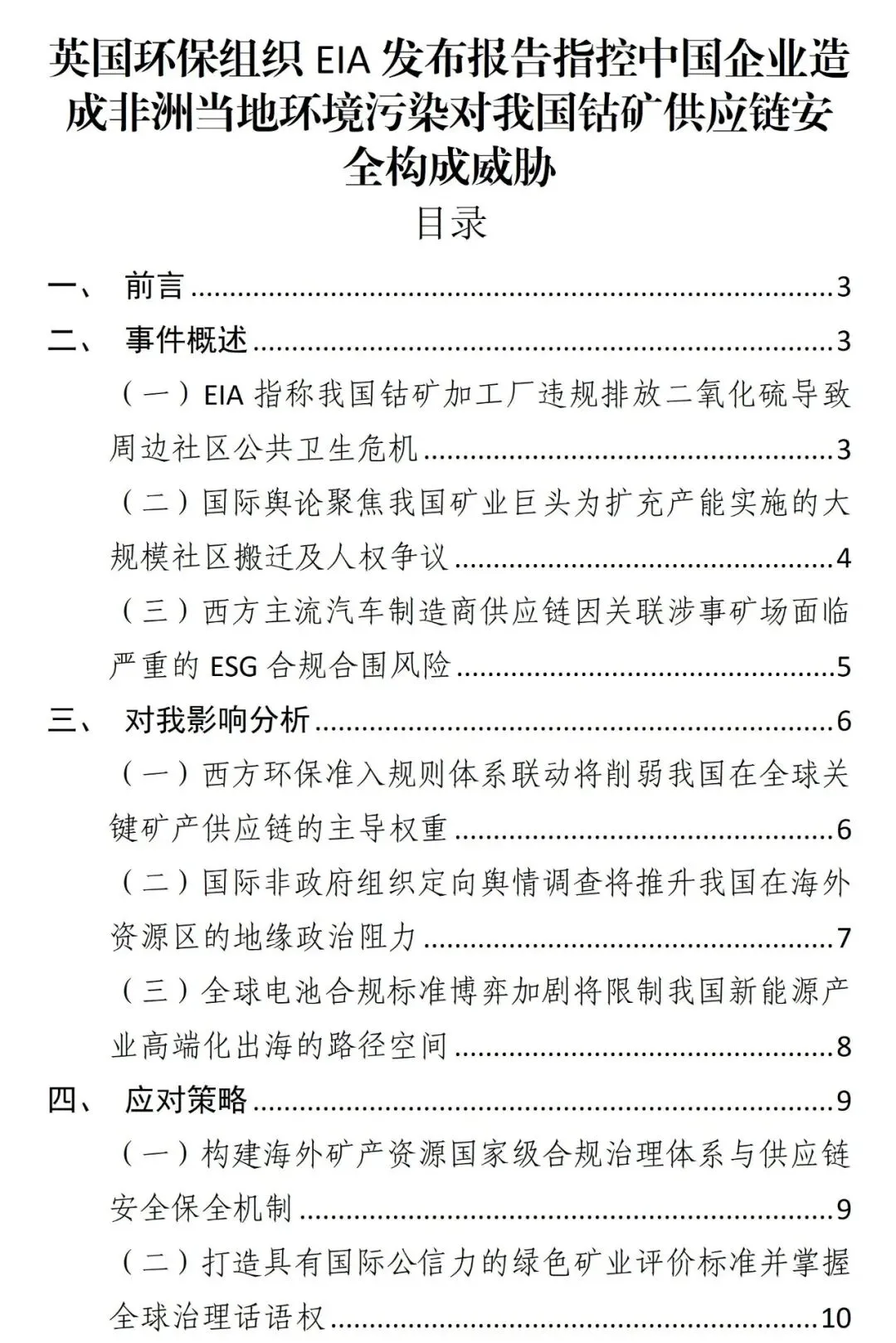 英国环保组织EIA发布报告指控中国企业造成非洲当地环境污染对我国钴矿供应链安全构成威胁