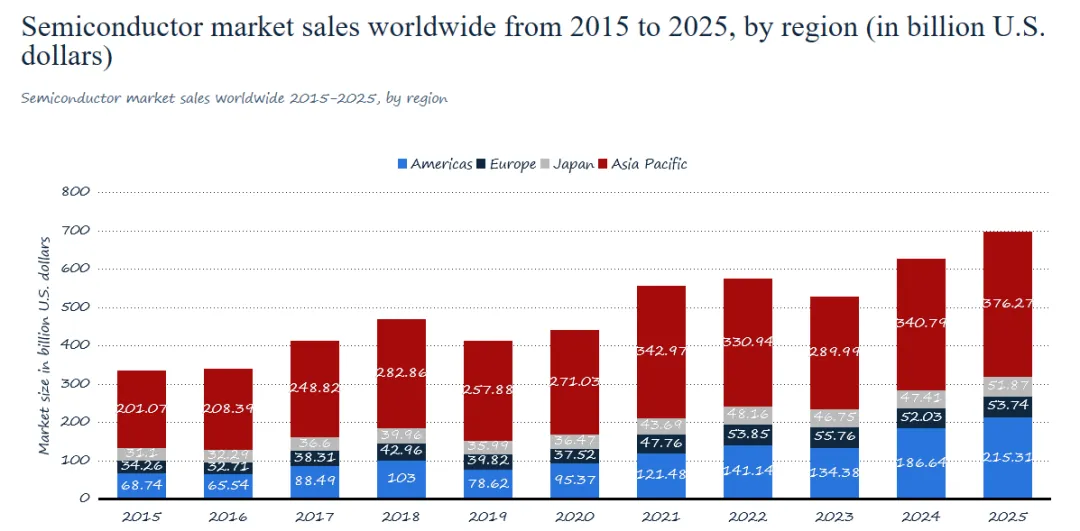 报告显示,全球半导体市场规模长期保持增长趋势: