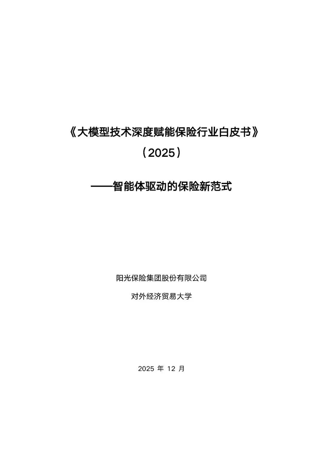 自2023年以来,以大模型为代表的新一代人工智能技术持续演进,2024-2025年更是完成了从规模扩张到认知升级的关键跨越。阳光保险集团与对外经济贸易大学联合发布的《大模型技术深度赋能保险行业白皮书(2025)》,系统勾勒出智能体驱动的保险新范式,为行业数字化转型提供了清晰的路线图。这份13万字的报告,既有技术前沿分析,又有国内外实践案例,核心要点如下: