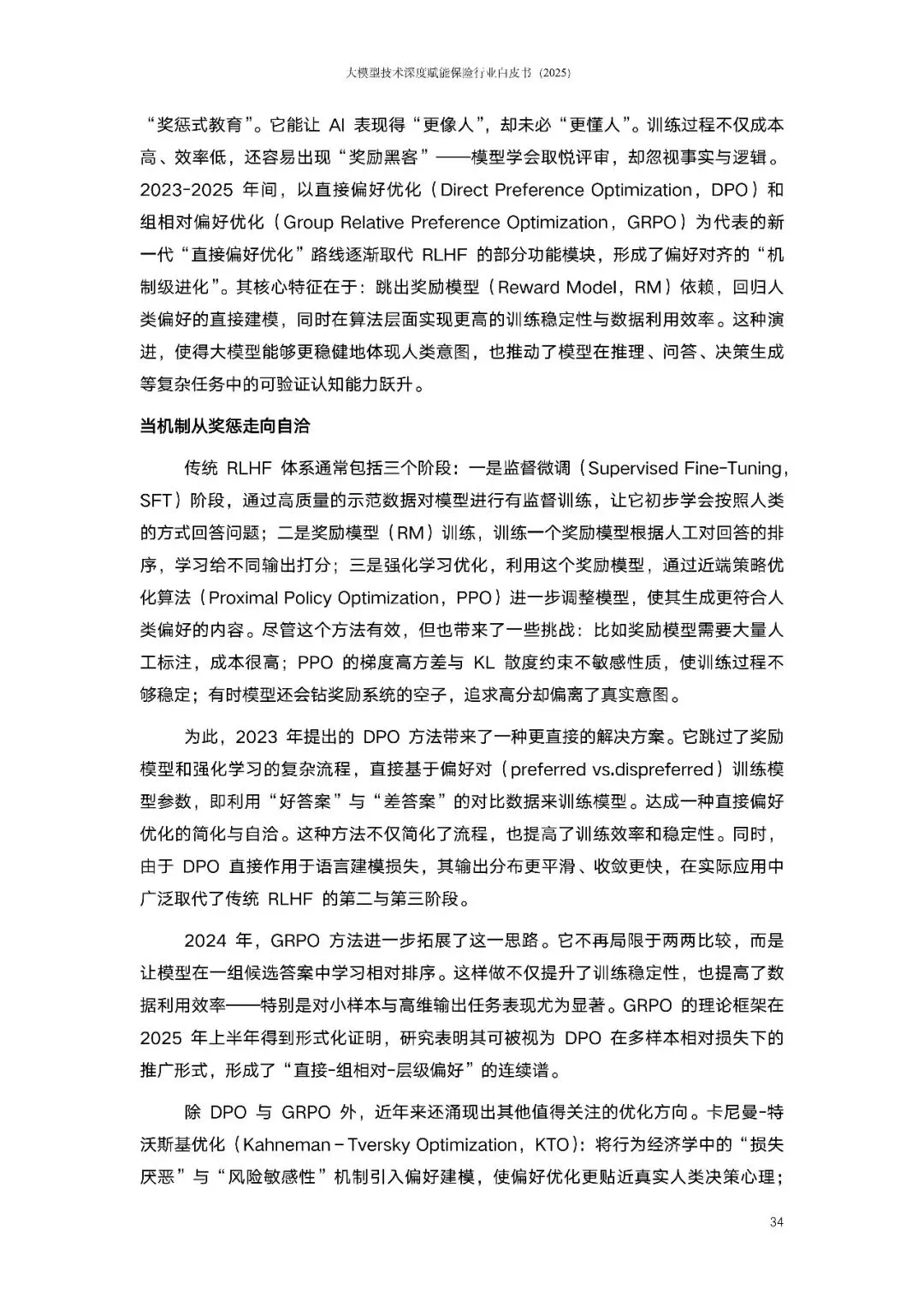 2.偏好对齐从RLHF到DPO/GRPO,实现机制级进化,让模型判断更贴合人类意图与规则;