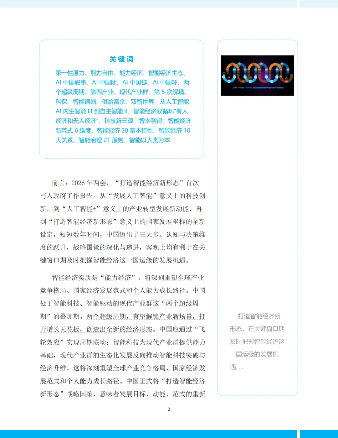 2026年,中国首次将“打造智能经济新形态”写入政府工作报告。这标志着中国在人工智能领域的战略定位,已从“技术追赶”跃升为“经济范式重构”。《上海财经大学2026智能经济中国发展新形态预研报告》(以下简称《报告》)正是这一历史性转折的思想产物。作为一部兼具理论深度与现实关怀的预研文献,《报告》不仅重新定义了智能经济,更构建了一套完整的“中国叙事体系”,为理解未来十年中国经济转型提供了关键坐标。