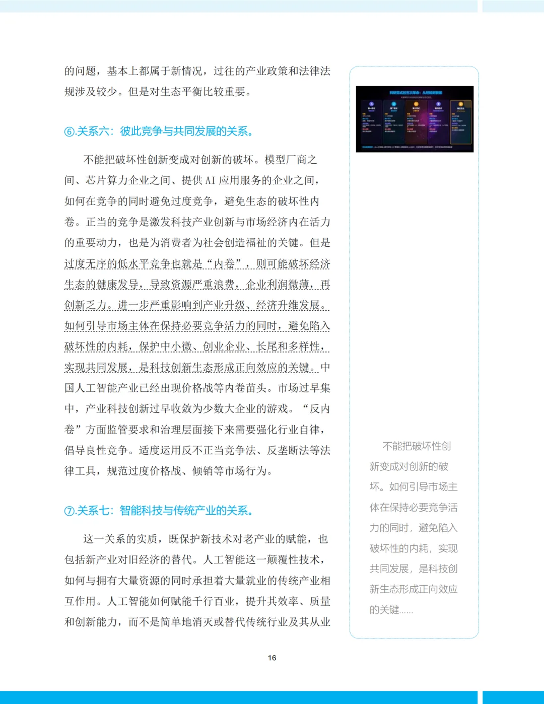 这些关系不仅是技术问题,更是制度问题、伦理问题、文化问题。《报告》强调,不能把“破坏性创新”变成“对创新的破坏”。这一判断在当前AI价格战、模型内卷、平台垄断等现实问题中尤显警醒。