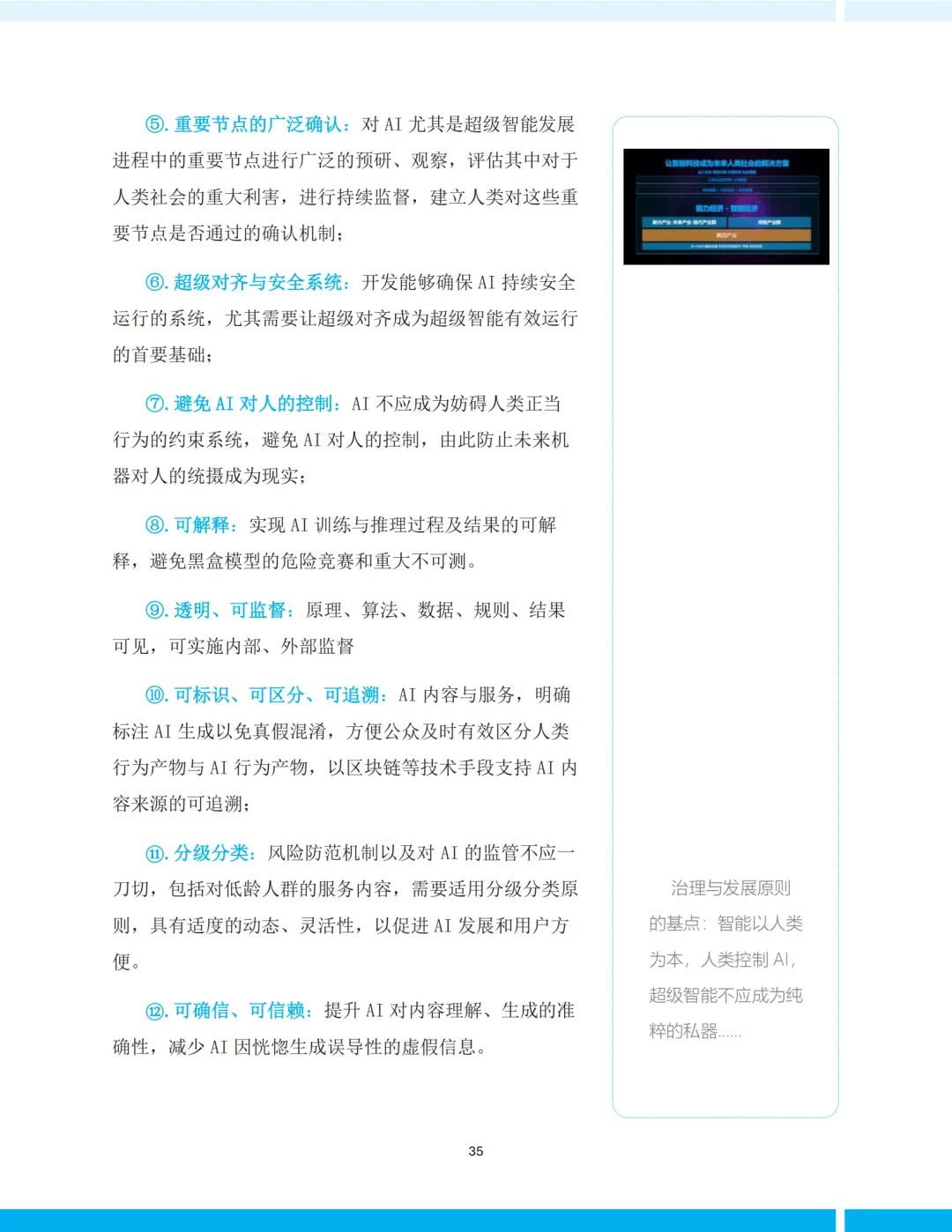 21条原则涵盖安全、伦理、透明、普惠、生态平衡等多个维度,既回应了当前AI治理的痛点(如深度伪造、算法偏见、数据隐私),也前瞻性地设想了未来超级智能的风险(如AI控制人、少数人垄断)。