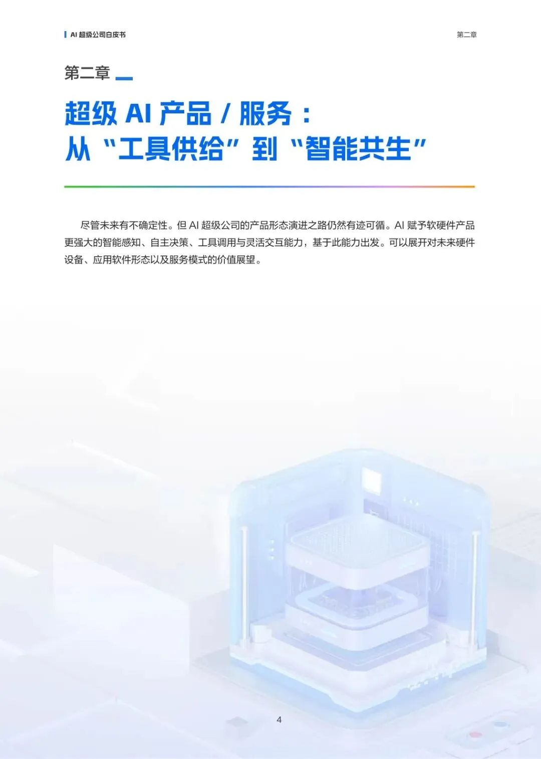 :超级 AI 产品 / 服务层面,从 “被动工具” 升级为 “主动智能体”,硬件产品分为 AI 辅助型、模型驱动型、原生智能型,软件产品向任务型 Agent、协作式 Agent 演进;超级 AI 基础 / 能力层面,构建多模态数据平台、AI 原生架构,实现 Agent 商业应用与端到端安全治理;超级 AI 组织 / 架构层面,从 AI 增强型、人机协同型向智能液态型进化,组织边界模糊化、生态化。 - 产品服务从 “工具供给” 到 “智能共生”