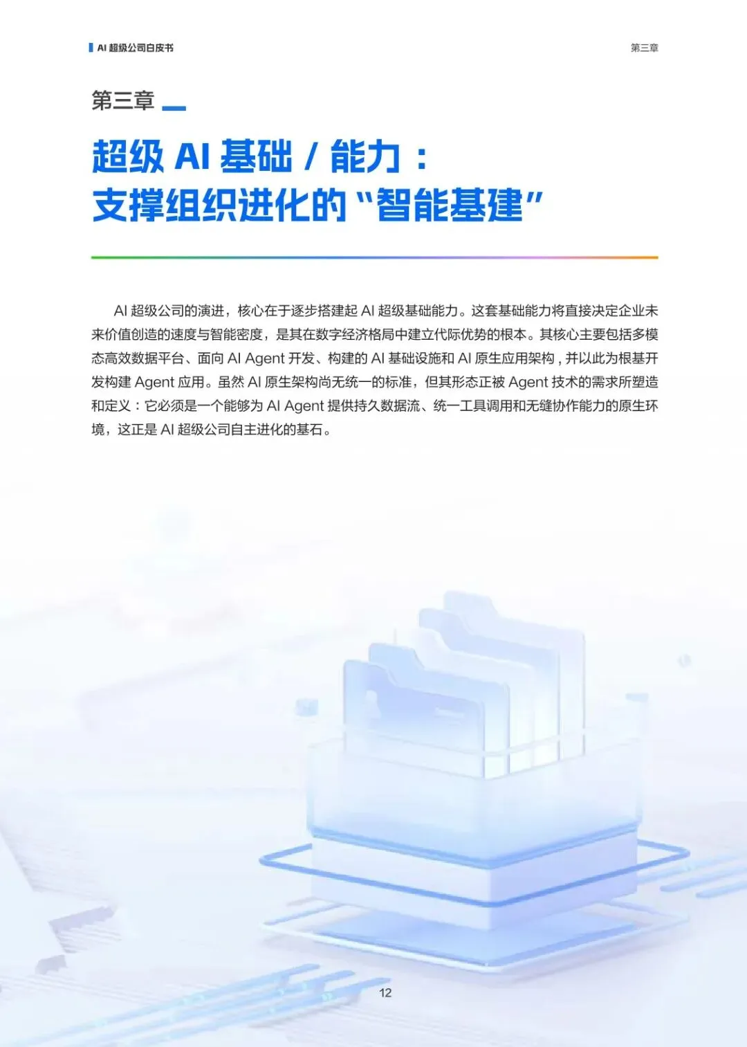 白皮书解析 AI 超级公司的形态特征与进化逻辑,定义其为以 AI 为底层生产力,具备 “产品服务 - 组织架构 - 基础能力” 三维创新的新型组织。重点分析 AI Agent 驱动的产品智能化跃迁、服务模式重构,以及从增强组织到液态组织的进化路径,构建 4D-12I 评估体系,指出数据治理、技术落地、组织转型是核心挑战,为企业 AI 转型提供框架性参考。