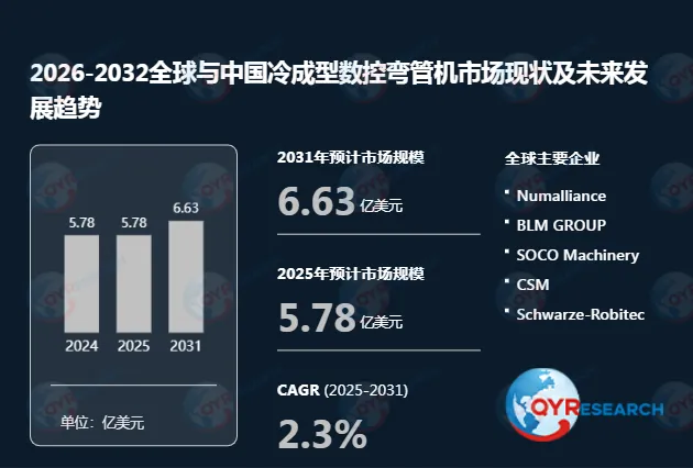 2025年全球冷成型数控弯管机市场销售额达到了5.78亿美元,预计2031年将达到6.63亿美元,年复合增长率(CAGR)为2.3%(2025-2031)。