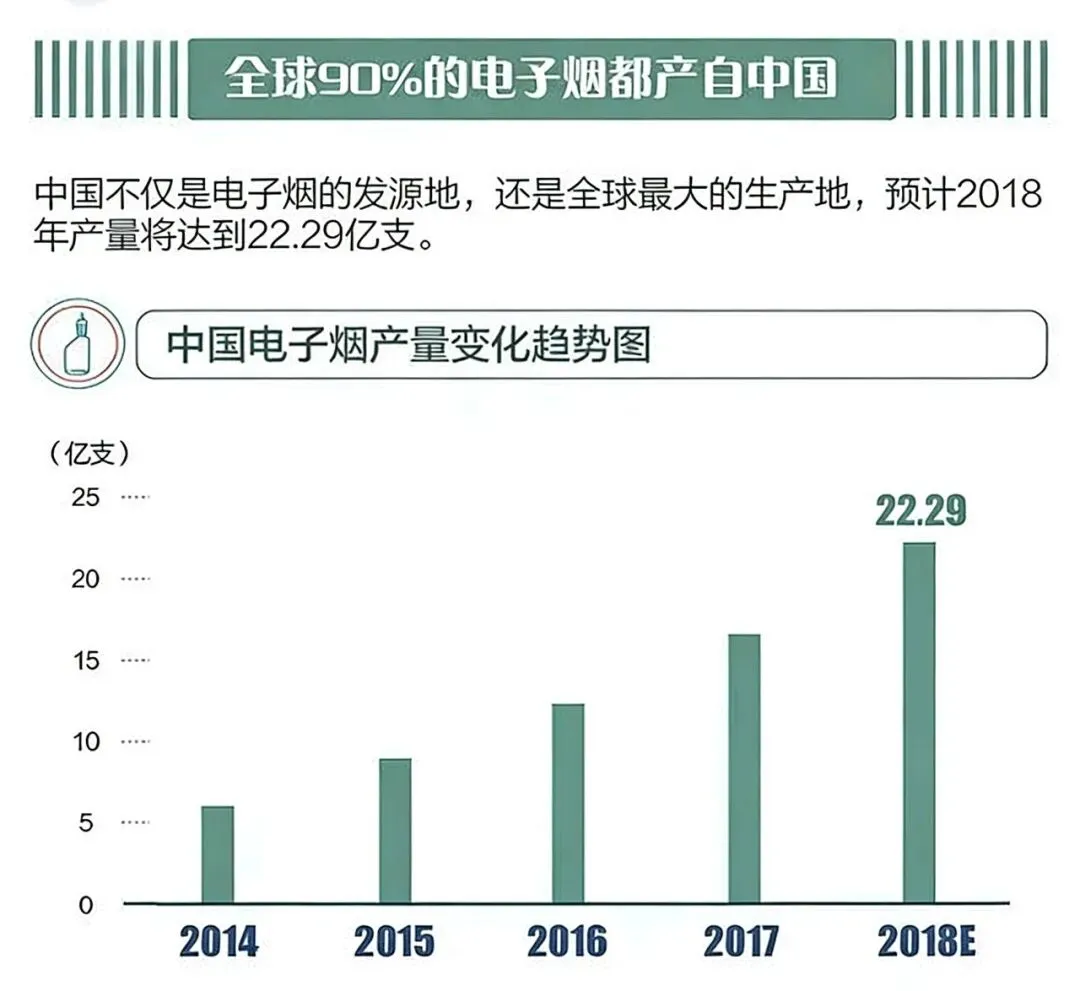 中国占全球电子烟产能的90%,是绝对的生产中心。