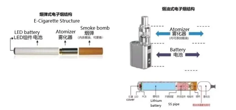 目前电子雾化烟(Electronic Cigarette, EC)主要分为两种类型:一种是蒸汽式(雾化型Atomizer / Vaping)电子烟,一种是加热不燃烧式电子烟(HNB,Heat Not Burning)。