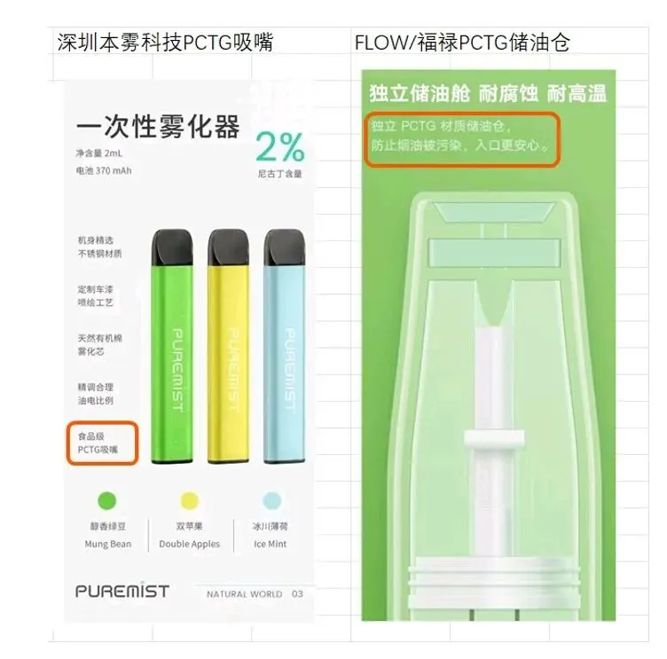· 烟嘴:PCTG具有极高透明度和光泽度,触感细腻,符合食品接触级标准