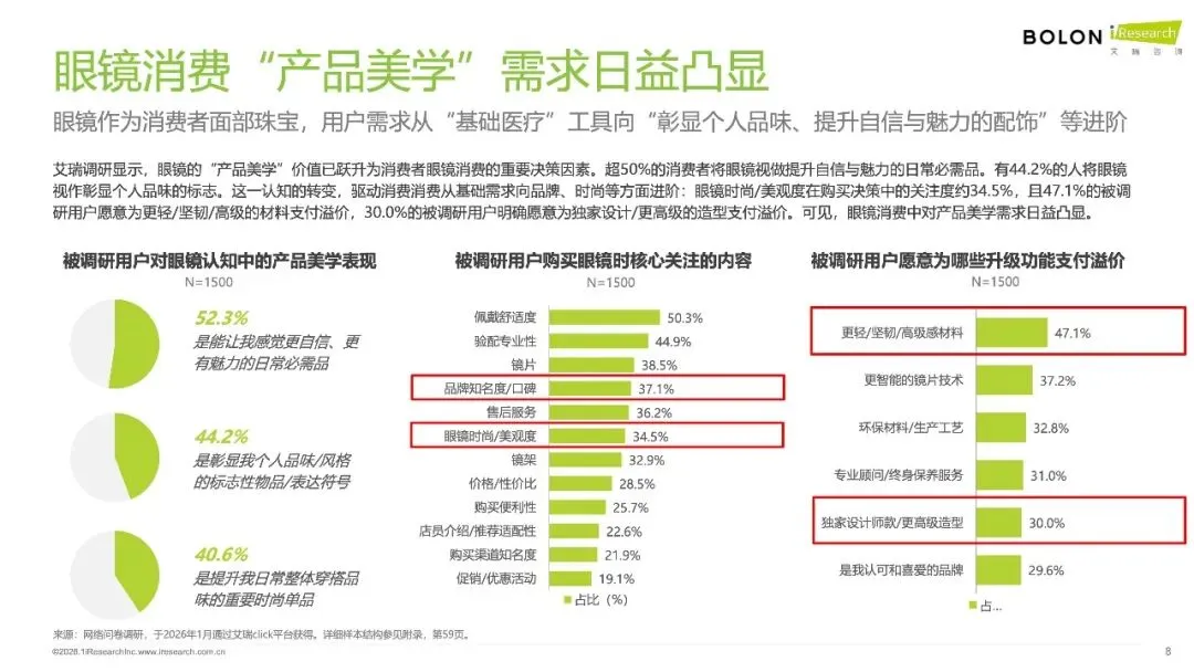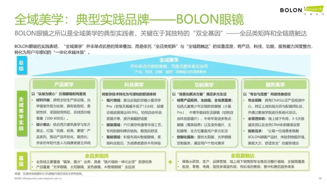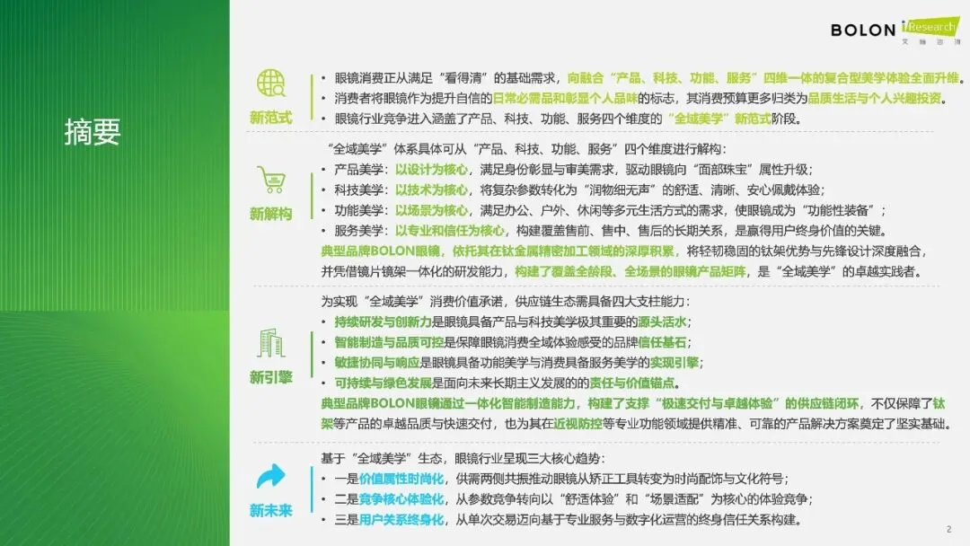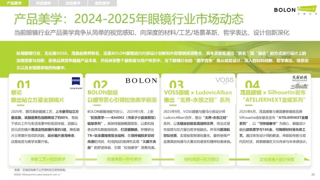 这场变革的本质是“需求倒逼产业升维”。当“看得清”成为标配,消费决策的天平便从功能参数转向情感价值:钛合金、β钛等高级材质因“轻若无物”的佩戴体验受追捧,独家设计、环保工艺开始撑起30%左右的支付溢价。眼镜不再是“坏了才换”的耐用品,而是随穿搭、场景切换的快时尚配饰。BOLON等品牌的“全品类矩阵+全链路触达”战略,正是将产品、科技、功能、服务打包成一套“美学解决方案”,把单次交易做成了终身关系。