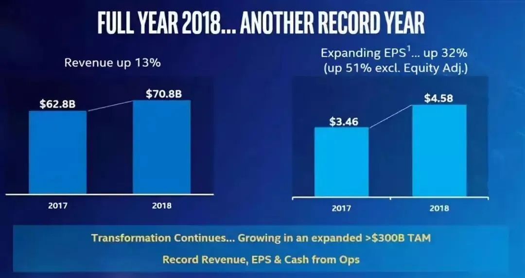 Intel公布了2018年第四季度及全年财报,各项数字均超出预期,显示了依然强劲的市场表现力和发展势头。