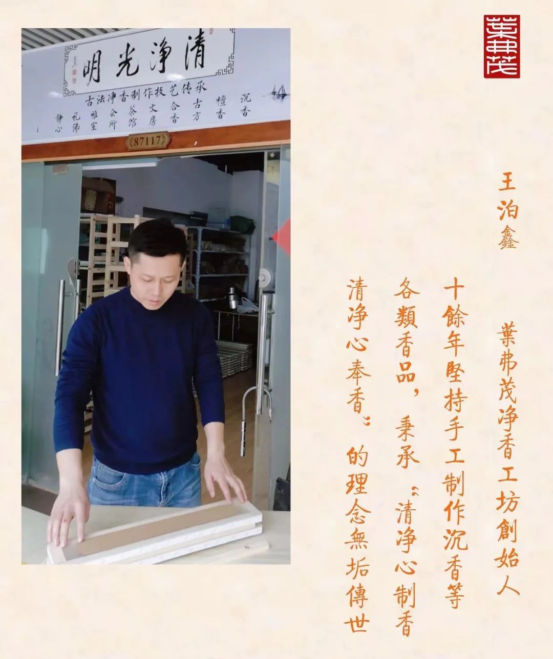 “葉弗茂”净香工坊创始人、上海中外文化艺术交流协会传统文化专业委员会副秘书长、上海工艺美术协会微型微雕专业委员会会员、吴式太极拳第六代传人