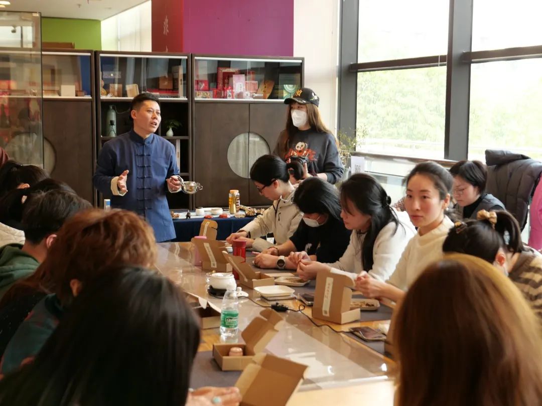 王泊鑫在上海市群众艺术馆非遗会客厅为上海市民讲解传统香文化和制香技艺