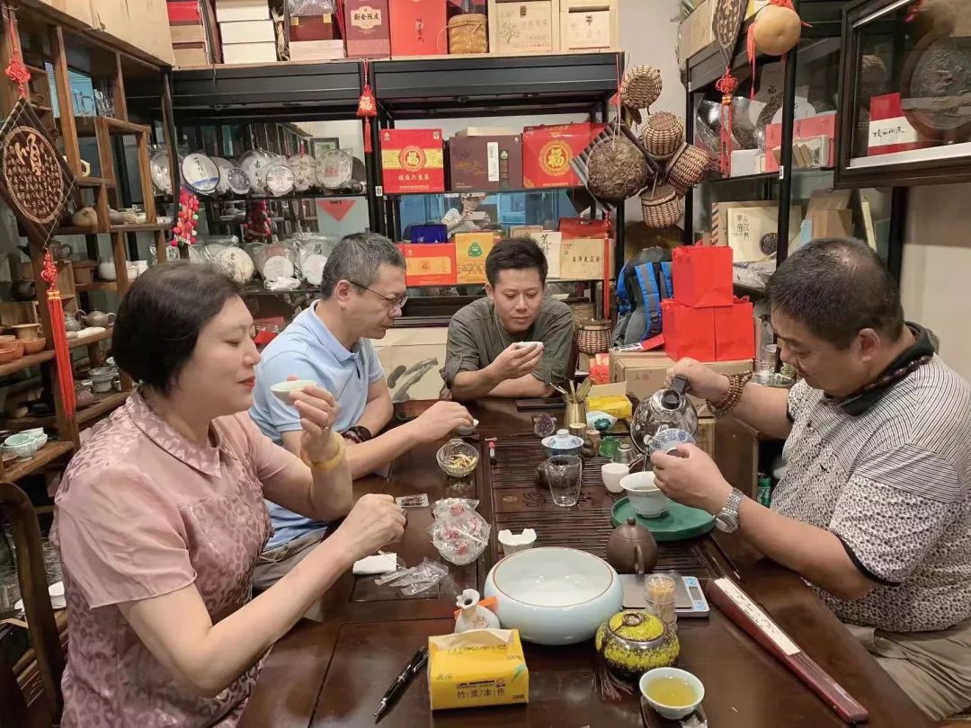 8月11日,如东县在沪企业家商会(以下简称:上海如东商会)秘书长张晓华、副秘书长张大青等走访会员单位久久缘茶文化(以下简称久久缘)、上海冠剑文化传播有限公司(以下简称冠剑文化)。