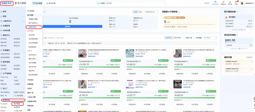 也可以从1688商家工作台-营销获客-客户管理-私域工作台(1688复购计划)点击进入。