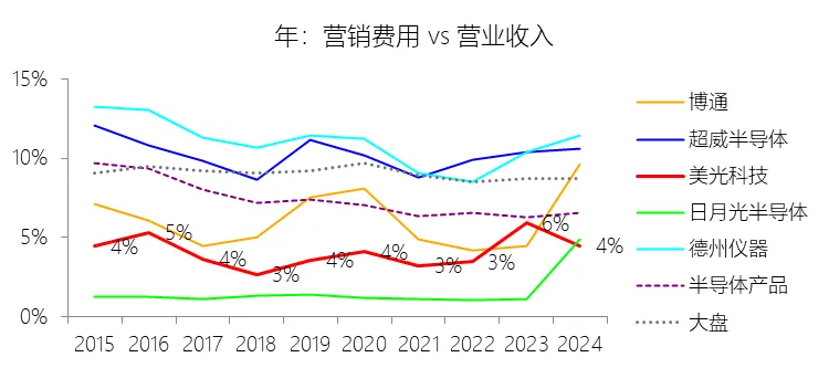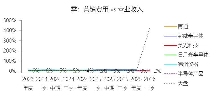 营销费用:2026财年第一季,美光科技的营销费用为3.37亿美元,同比增长17.01%,与营业收入的比例为2.47%,同比下降0.84个百分点;2015-2024财年(十年),此项合计为86.60亿美元,平均比例为3.88%,比半导体产品行业的均值低3.28个百分点,长期呈上升趋势。比例短期下降主要由于人工智能(AI)驱动的强劲市场需求带动了2026财年第一季营业收入实现56.65%的爆发式同比增长,这一增速远高于同期营销费用(SG&A)17.01%的增长速度,从而在营收大幅扩张的背景下产生了显著的规模摊薄效应。尽管该季度因员工薪酬增加导致SG&A绝对金额有所上升,但受益于高带宽内存(HBM)等高价值产品带来的平均售价提升,营收端的增长主导了比例的下行。比例长期上升主要由于在2015至2024财年期间,随着公司业务规模的扩大和制程技术的演进,管理及行政开支的绝对水平持续走高。具体原因包括:公司在过去十年中通过并购(如MMJ和华亚科)引入了大量增量员工,导致薪酬、奖金及福利支出显著增加;由于制程复杂度提升和向系统级解决方案(如SSD和管理型NAND)转型,公司承担了更高比例的股票期权激励费用;此外,频繁的法律诉讼费用、专业服务咨询费以及在行业景气周期恢复的绩效工资发放,均推高了营销费用的长期基数。比例低于半导体产品行业的均值主要由于存储芯片的产品特性和销售结构与行业池中的逻辑、模拟芯片企业(如博通、超威半导体、德州仪器)存在差异。美光的主力存储产品大多遵循行业标准规格且具有大宗商品化特征,其竞争核心主要在于制程领先带来的价格优势和性能表现,而非密集的终端市场品牌推广或定制化营销,这使得其营销投入占比天然低于那些需要高额营销投入来维持市场地位的逻辑芯片设计巨头。同时,美光的客户群体呈现极度集中的特征,前十大客户通常贡献了约一半的营业收入,这种针对大型OEM厂商和分销商的直销模式极大提高了销售效率,使得美光能够以更低的营销费用占比支撑大规模的全球业务。