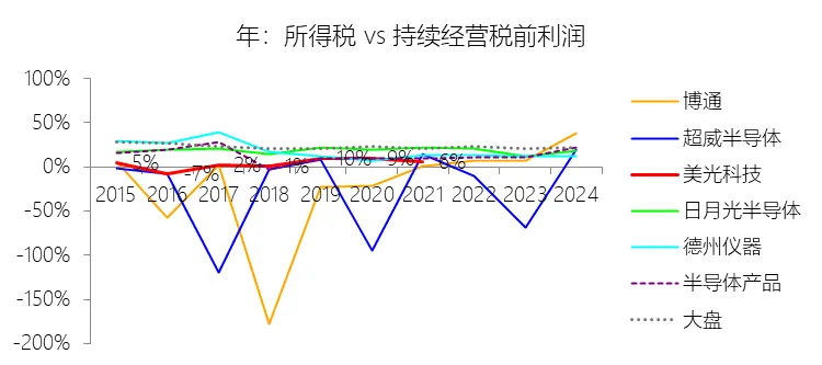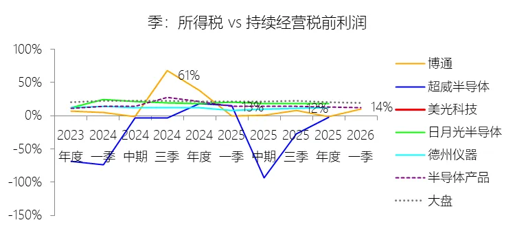 所得税率:2026财年第一季,美光科技的所得税为8.29亿美元,同比增长192.93%,与持续经营税前利润的比例为13.66%(所得税率),同比上升0.52个百分点;2015-2024财年(十年),此项合计为18.25亿美元,平均比例为4.32%,比半导体产品行业的均值低8.59个百分点,长期呈上升趋势。