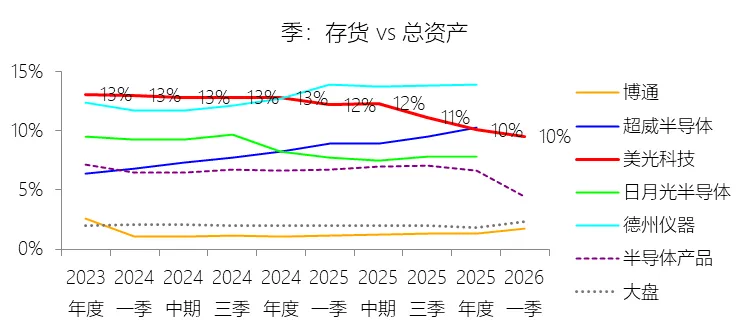 存货:2026财年第一季末,美光科技的存货为82.05亿美元,对比年初减少1.8%,与总资产的比例为9.54%,同比下降2.64个百分点;2015-2024财年(十年),此项合计为508.50亿美元,平均比例为10.34%,比半导体产品行业的均值高3.61个百分点,长期呈上升趋势。