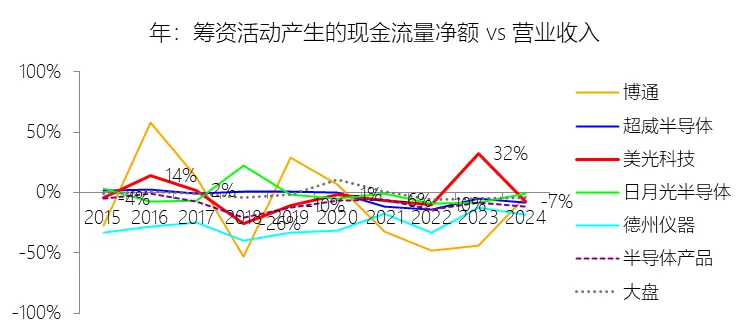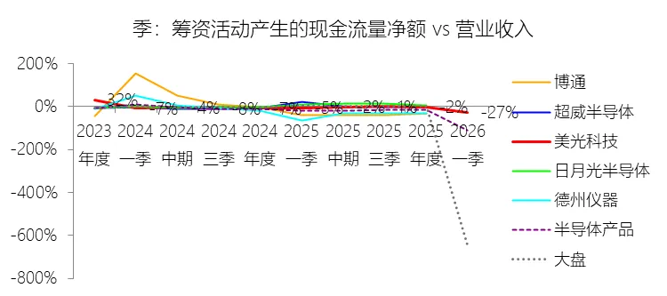筹资活动产生的现金流量净额:2026财年第一季,美光科技的筹资活动产生的现金流量净额为-37.45亿美元,绝对值同比增长787.44%,与营业收入的比例为-27.45%,同比下降22.6个百分点;2015-2024财年(十年),此项合计为-107.75亿美元,平均比例为-4.83%,比半导体产品行业的均值高4.94个百分点,长期呈上升趋势。比例短期下降主要由于美光科技在2026财年第一季进行了极其密集的债务偿还和资本还回活动,导致筹资活动产生的现金流出剧增。具体而言,公司在本季支付了高达29.43亿美元用于偿还债务,其中包括全额预付了2028年票据、2029年B票据及2029年A项定期贷款的本金,同时还投入3亿美元进行普通股回购以及3.67亿美元用于员工股权激励相关的代扣税款回购,这种远超去年同期(仅偿债8400万美元)的筹资性现金流出量,导致该指标比例在短期内显著下滑。比例长期上升主要由于在2015至2024财年期间,公司的筹资策略经历了从频繁偿还旧债向大规模战略融资支撑产能扩张的转变。特别是在2023财年,面对严重的行业衰退和庞大的先进制程(如HBM和EUV技术)资本开支需求,美光通过发行高级票据和定期贷款协议筹集了约67.16亿美元的现金,这种为应对周期性波动及支持在爱达荷州和纽约州兴建领先内存工厂而进行的巨额融资,使得长期的筹资净现金流表现出从大额净流向向净流入波动的特征,从而拉高了长期的平均比例。比例高于半导体产品行业的均值主要由于本专题分析的行业池中包含大量如英伟达、博通等轻资产的逻辑芯片设计巨头,这些公司通常拥有极高的自由现金流,并倾向于通过数百亿美元规模的股份回购和持续分红将现金返还给股东,从而产生比例更高的筹资活动现金流出。相比之下,美光作为垂直一体化的重资产制造企业,其业务模式决定了在每个景气周期都必须预留大量资金或通过债务市场融资来支持百亿美元级别的物业、厂房及设备(PP&E)投入,这种持续的资本密集型投入和周期性融资需求,使得其筹资活动现金净流出的比例在结构上长期高于那些资本支出负担较轻、侧重于资本还回的行业同类企业。