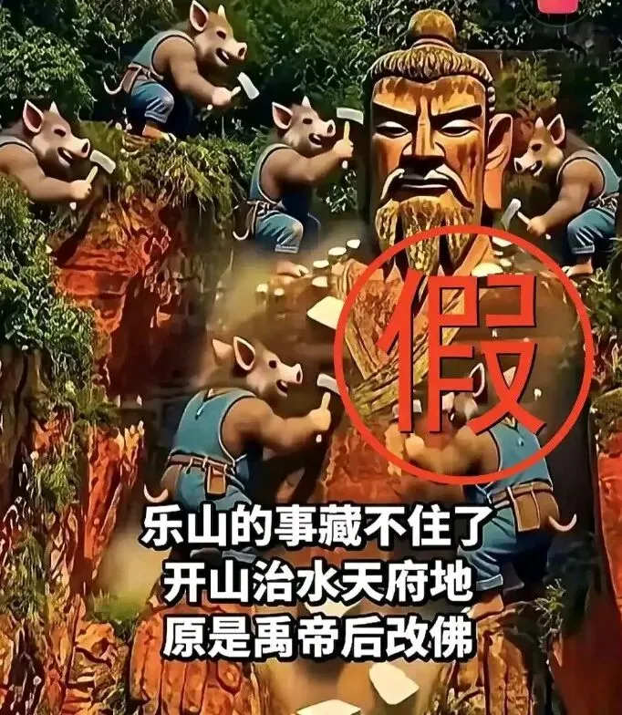 1. 历史虚无主义推波助澜:部分学者、自媒体借“考证历史”名义,否定乐山大佛官方定论,断章取义、伪造证据,将“大禹改佛”包装为“千年秘闻”,利用大众对历史的认知盲区扩散谣言。