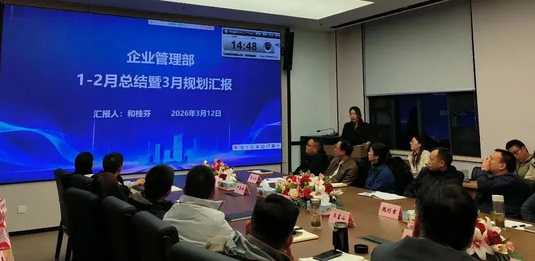 紧接着企业管理部部长和桂芬代表企业管理部,从1-2月人才培养、流程制度、薪酬绩效、会议文化、运营管理等工作汇报完成情况,并明确3月工作规划,重点推进人员招聘培养及公司经营重点项目跟进,持续提升企业运营管理效能。