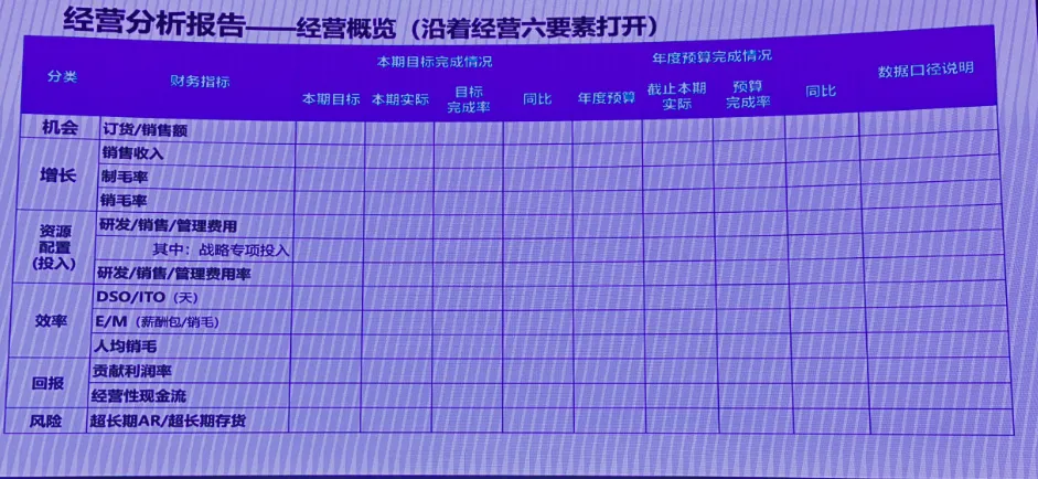 这六个维度,构成了经营分析的完整闭环,从外部机会到内部效率,再到最终回报与风险,一目了然。
