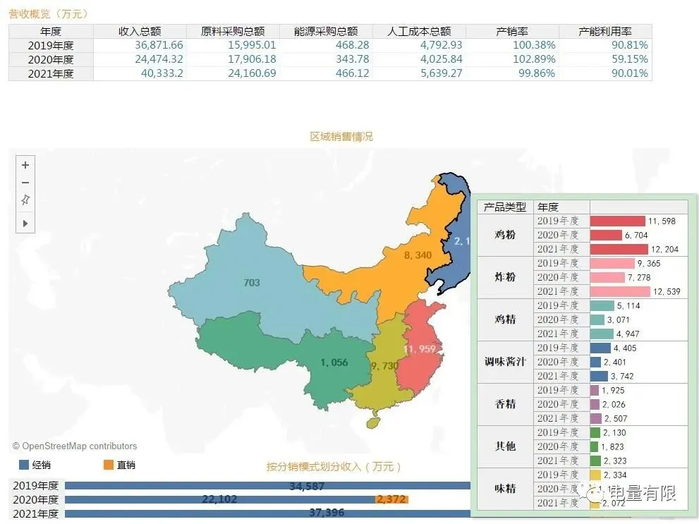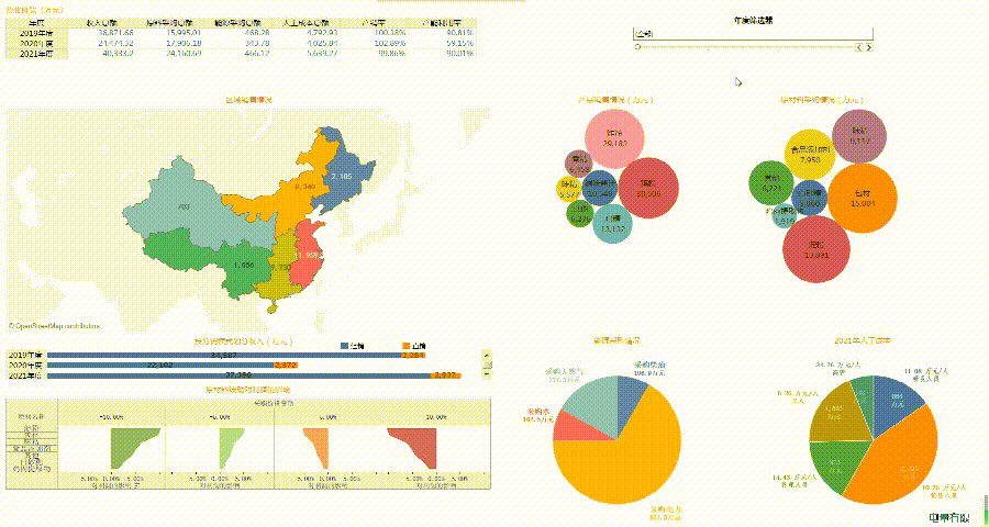 将某企业披露的三年经营数据加工处理后做了个可视化仪表盘↓↓(点击可查看动画)