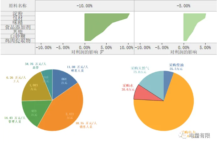 原材料价格波动对利润的影响(上)、2021年人工成本 (左下) 、 2021年能源成本(右下)