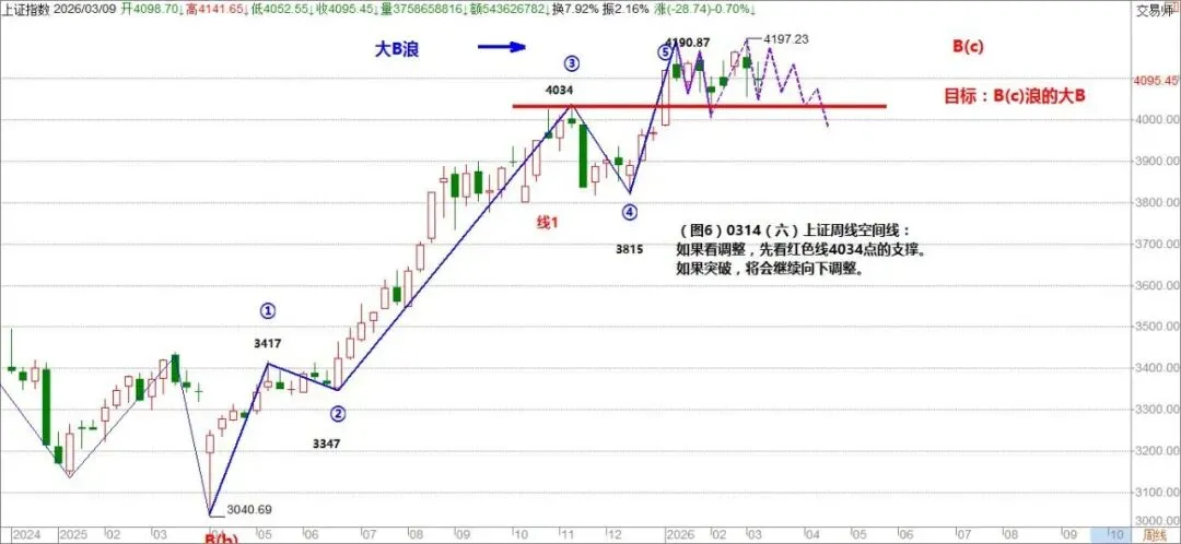 如果看调整,先看红色线4034点的支撑。