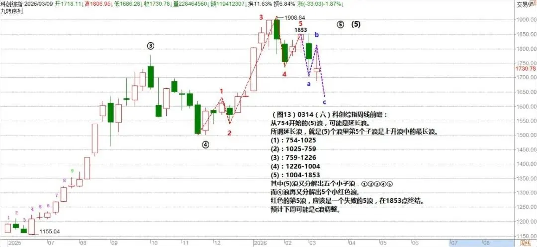 (图13)0314(六)下周科创综指周线前瞻:
