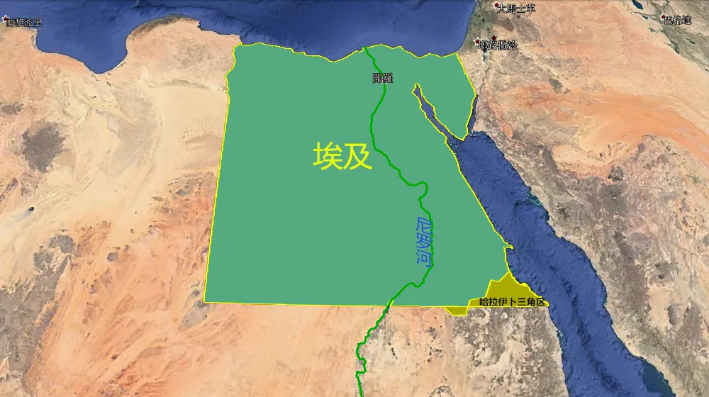 埃及地跨非洲和亚洲,隔地中海与欧洲相望。大部分位于非洲东北部,只有苏伊士运河以东的西奈半岛位于亚洲西南部。国土面积100.145万平方公里,排名世界第30位,94%的国土为沙漠。东临红海并与巴勒斯坦、以色列接壤,西与利比亚为邻,南与苏丹交界,北临地中海。海岸线长约2900公里。尼罗河纵贯南北,全长6700公里,在埃及境内长1530公里。