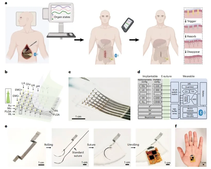 2月3日,达特茅斯学院团队在Nature Biomedical Engineering上发表文章,开发了一套集成了柔性电子、生物可降解材料与多模态传感技术的新型系统。通过赋予设备“空间映射、按需消亡、多维感知”的协同特性,该系统旨在为深层器官提供连续、实时且精准的生化图谱,彻底规避了二次手术取出的临床负担。