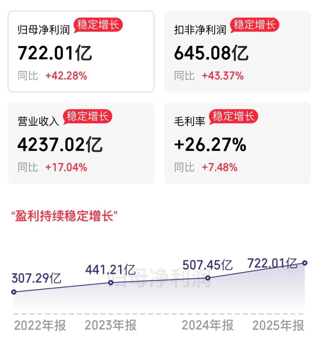去年总收入4237亿,同比增长17%。最关键的是净利润为722亿,同比大增超42%!算笔账,平均每天净赚近2个亿,这赚钱速度堪称“印钞机”。