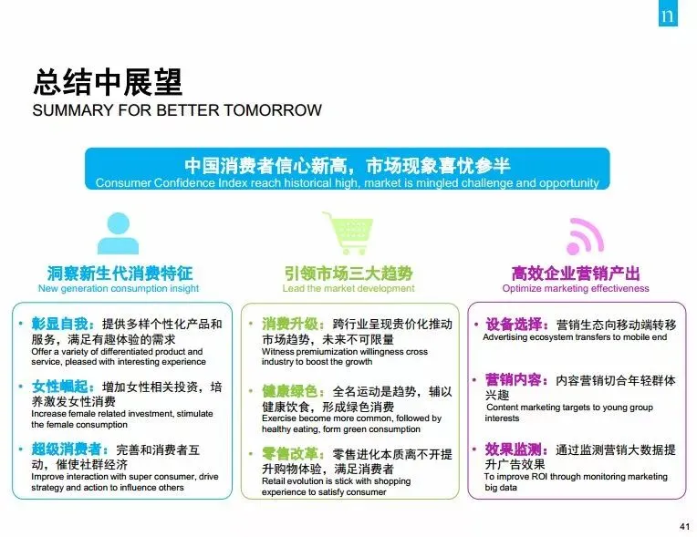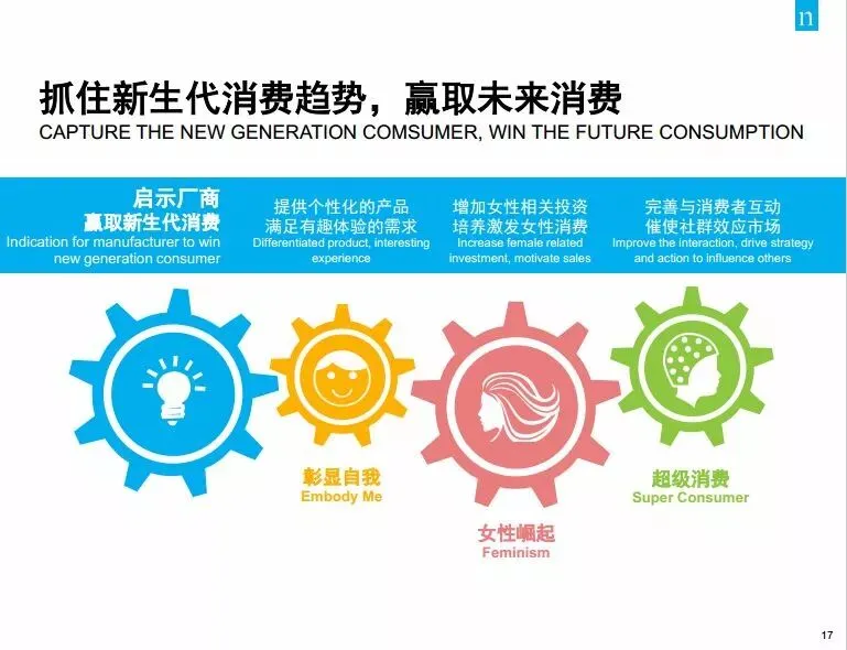品牌应提供多样个性化产品和服务,满足有趣体验的需求,同时增加女性相关投资,培养激发女性消费,更重要的是完善和消费者互动,催使社群经济的发展。